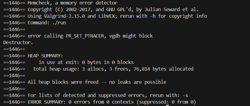 Ok, giờ bỏ comment để free vùng nhớ tại destructor nhé